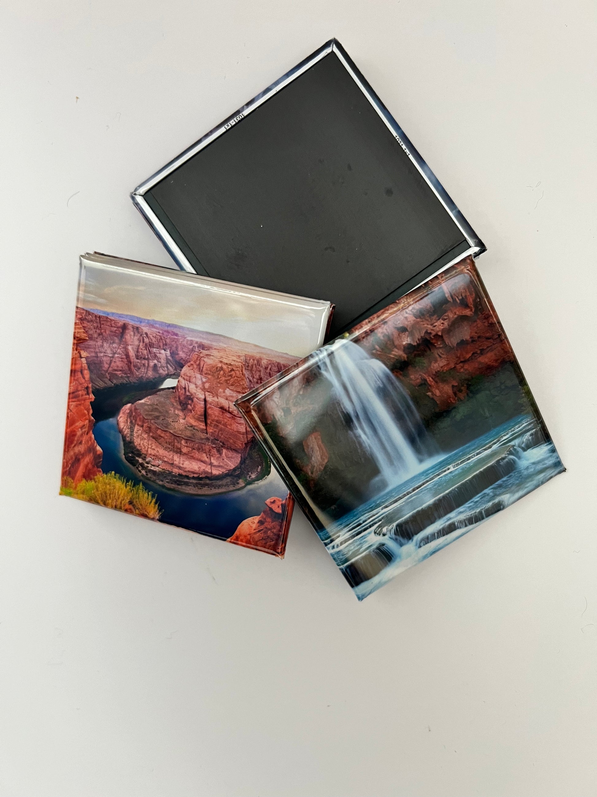 Product Details: Each magnet measures 2.5x2.5". Photos are printed on glossy high quality photo paper, and magnets have a strong backing ensures a firm hold on any fridge or magnetic surface.